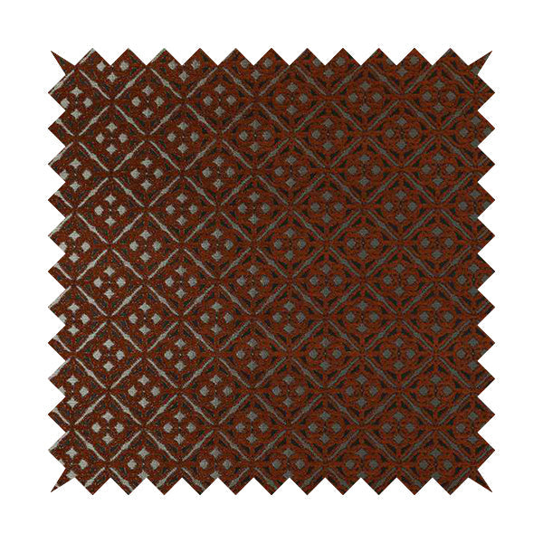 Azima Small Medallion Geometric Pattern Orange Silver Shine Upholstery Fabric JO-338